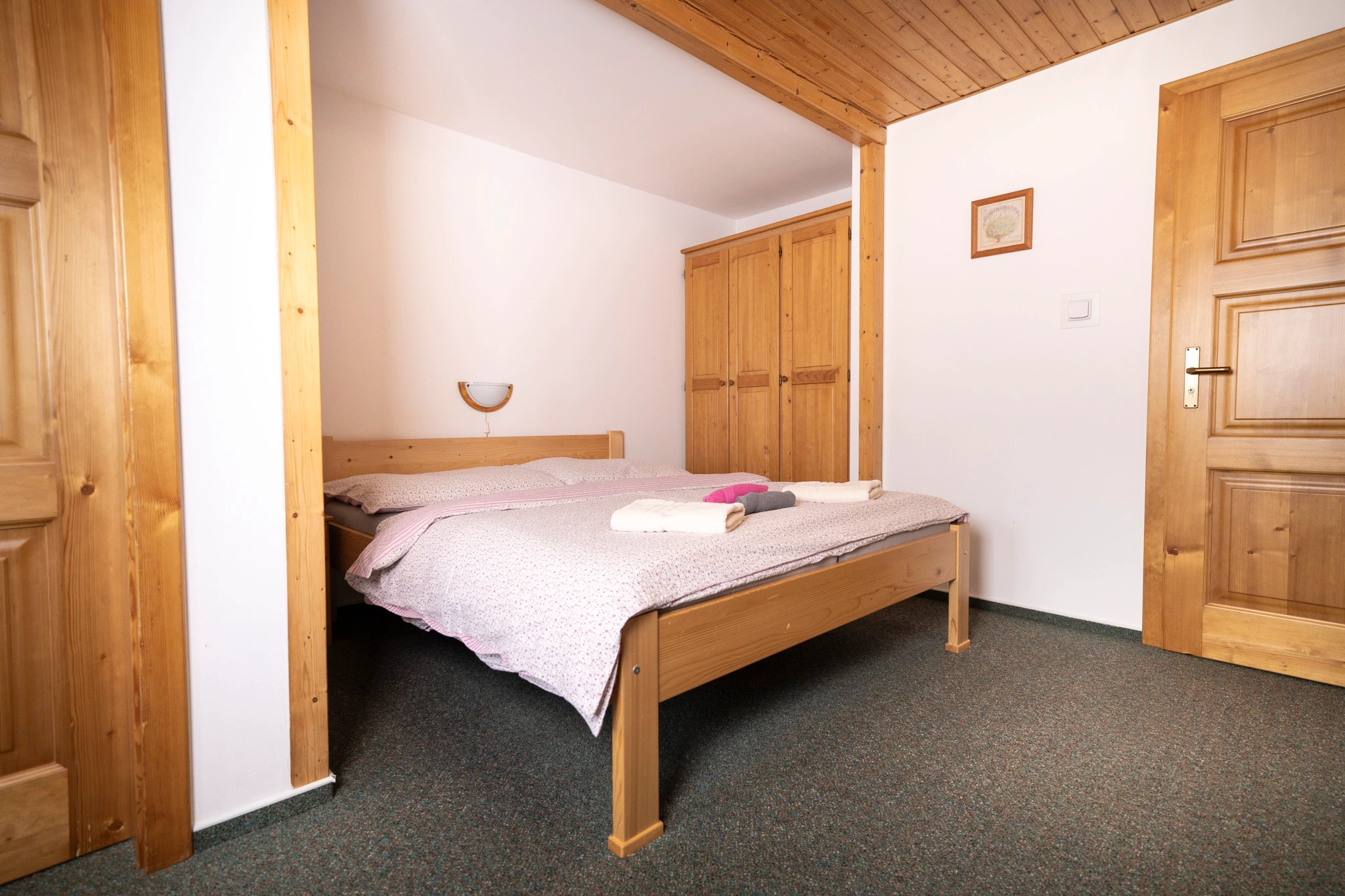 Apartmán tvoří dvoulůžkový pokoj s kuchyňkou a TV, třílůžkový pokoj, sociální zařízení se sprchovým koutem a WC.